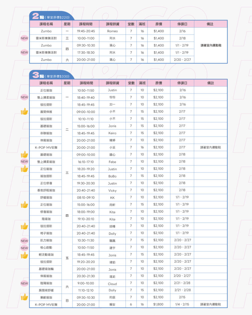 𝗡𝗘𝗪 𝗬𝗘𝗔𝗥 ! \ 1-2月團體課程 /